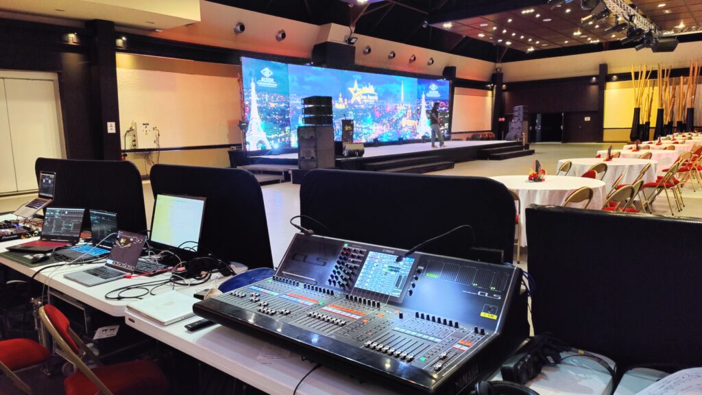 Installation d’une scène avec toiles de projection, pendrillon, panneaux led, éclairages et décors pour « AV Prod »Installation d’un plateau et d’éclairages pour « Clak Prod »Exploitation de la sonorisation L-acoustics sur une console Yamaha CL-5 pour « Mise en scène »Mise en place d’un plateau, installation de micros HF Shure, accueil des intervenants, et exploitation des lumières pour » Clak prod »Installation d’une scène avec toiles de projection, pendrillon, panneaux led, éclairages et décors pour « AV Prod »Installation d’un décor et contrôle d’éclairages pour la production d’un clip de rap amateurPrise de son et Exploitation sur une console Yamaha 01v96i en conférence avec chant et guitare pour « Clak Prod »Transformation d’une salle de réception avec l’installation d’un podium pour « Mise en scène »Exploitation de la régie d’un cinéma en live – intervention sur un Barco AP24 pour « Clak Prod »Exploitation d’une sonorisation longue portée RCF pour « Crossfit Marcoussis »Arrivée d’une compétition sportive pour « Crossfit Marcoussis »Sonorisation et animation d’un événement sportif pour « Crossfit Marcoussis »Installation, exploitation d’une console Behringer Wing compact, et prise de son pour « Clak Prod »Fabrication de décors et scénographie d’un festivalFabrication de décors et scénographie d’un festivalExemple d’étude de projet pour l’intégration audio dans bar dansantInstallation d’une sonorisation L-acoustics Kara, de rappels A10, de micros HF Shure et de panneaux LED pour « Mise en scène »Exploitation de la sonorisation L-acoustics sur une console Yamaha CL-5 pour « Mise en scène »Installation de la régie, de caméras et d’un système HF pour « Clak Prod »Installation d’une régie audiovisuelle complète, d’éclairages et de vidéoprojecteurs pour « AV Prod »